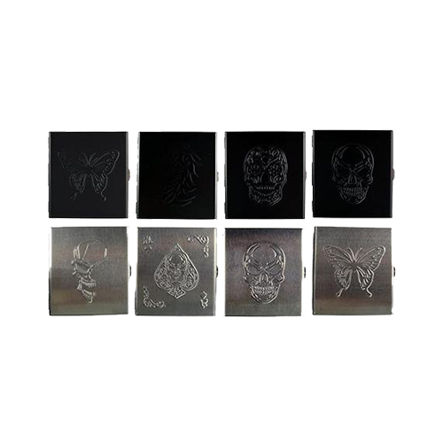 Compact and lightweight food grade stainless steel cigarette case. Hold cigs, money and more! Features a variety of trending design styles.