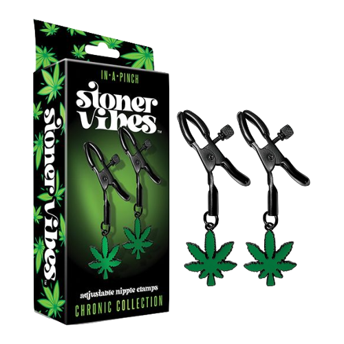 Stoner Vibes Nipple Tweezer Clamps are perfect for beginners and advanced users. A fun cannabis charm dangles at the end of each one.