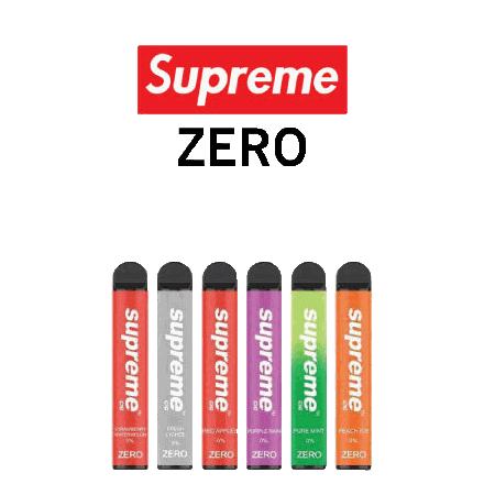 | Supreme Zero | Black Ice, Gummy Bear, Macchiato, Fresh Lychee, Blue Razz, Banana Ice, Kiwi Strawberry, Peach Berry ice, Peach Mango Watermelon, Strawberry Watermelon |