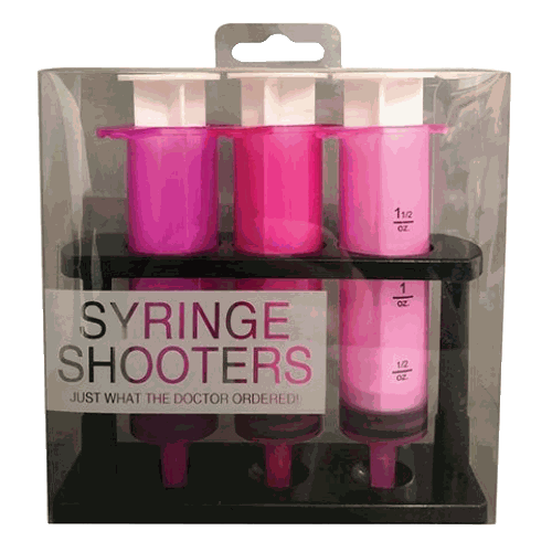 Just what the doctor ordered! Three syringe shooters to administer at a party to those in need of an injection! Fill with the liquid of choice and then squirt into other’s mouths. Hand wash only.
