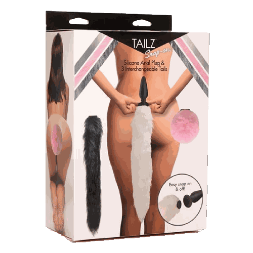 Tailz Snap On Silicone Anal Plug w/3 Interchangeable Tails – Asst Colors