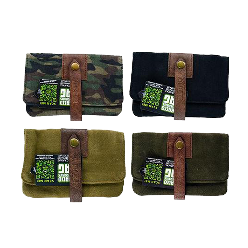 Our Tobacco Accessories Bag is your perfect on-the-go case! Made with waxed canvas, creating a waterproof and smell-proof case sealed with a brass button strap. Fits BicĀ® and similarly shaped lighters. Perfect for storing dried food, herbs, tobacco, valuables and more. Has several pockets. Comes in assorted styles.