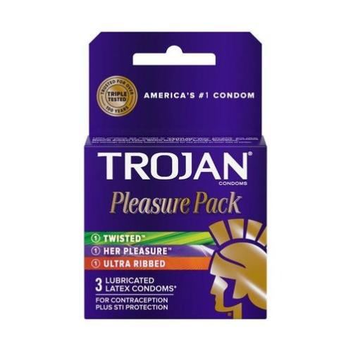 Positively stimulating. The Trojan™ Pleasure Pack includes some of the most sensual condoms we offer to let you both experience unique sensations that’ll keep you coming back for more. Twisted™ has spiral ribs for both partners’ pleasure, while Her Pleasure™ has ribs and contours to increase her enjoyment. Intense has super deep ribbing and Warming features a warm sensations lube to heat things up.