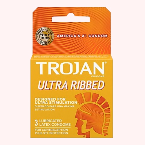 The recognizable Trojan™ condoms that come in the yellow wrapper. For a ribbed condom that can bring the rumble, try Trojan™ Ultra Ribbed. These condoms feature deep ribs that are designed to increase stimulation. Try these ribbed latex condoms so you and your partner can bump n’ grind.