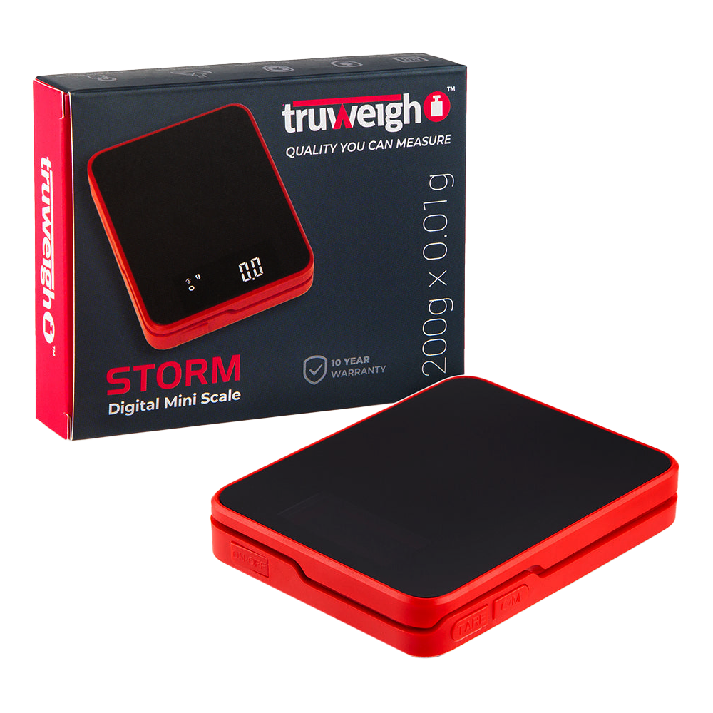 The STORM digital mini scale features a slick, seamless platform design with a two-piece protective cover. The futuristic design also makes it ultra portable and easy to bring along in your pocket, handbag or backpack. The hard plastic cover keeps the precision weighing sensor protected during transport or storage and also doubles as an expansion tray. Results are easy to read on the elegant back-lit LCD in any lighting condition. Use the Storm in the kitchen, cash and carry stores, and headshops.