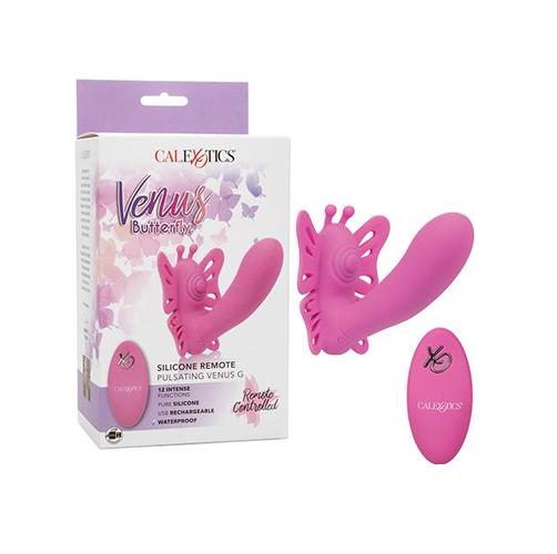 The now world-famous Venus Butterfly® collection has done it again with a sensually thumping probe and 12 intense functions of vibration. Spread your wings and tease on-the-go with the ravishing remote control range of up to 32.5 feet (10m) away! While the sensually curved vibrator deliver knee-shaking G-spot stimulation, the contoured butterfly hugs close to your body for external teasing. Whether you?re looking to turn up the heat with a lover or just enjoy some sensual solo time, this blissful butterfly is ready. While the curved tip delivers pinpoint thumping sensations with a pulsation tip for powerful G-spot stimulation, the soft, pliable butterfly envelopes your most intimate curves to deliver blissful external pleasure. To use with the remote, hold the push-button control for 3 seconds to turn on/off and use the XO button to cycle through 12 vibration, pulsation and escalation functions. While the easy-to-use vibe can be used with or without the remote to control the intensity, the integrated state of the art memory chip remembers just how you like it by starting on the last function used. Recharge the premium silicone massager in 50 minutes with the provided dual charging USB cable to enjoy 35 minutes of high-speed stimulation or 45 minutes of low speed vibrations. Massager will automatically turn over after 30 minutes of inactivity. The hypoallergenic premium silicone is body safe, unscented and phthalate free to keep you most sensitive spots, happy and healthy.