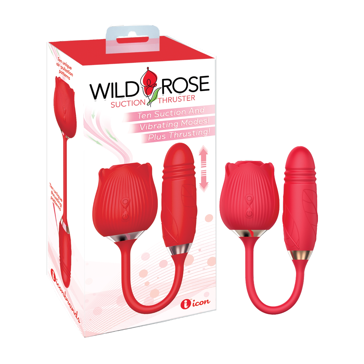 For the times when suction alone just won’t do, we offer the exciting classic rose but with a thruster attachment. It extends forward and back with 10 lengths and intensities, while the advanced rose (V2) also provides 10 suction styles and speeds. All in Icon’s own “lipstick red,” the brightest red in silicone! Truly an pleasure, for all the senses.