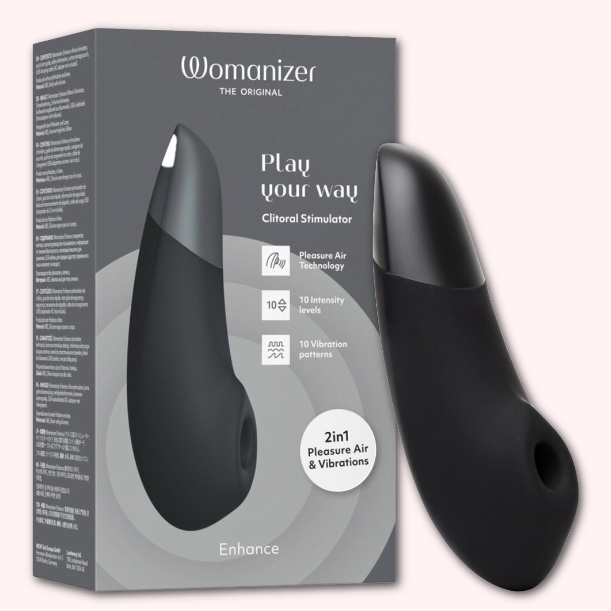2-in-1 Clitoral Stimulator with Pleasure Air & Vibrations. Womanizer’s Pleasure Air Technology combined with We-Vibe’s rumbly vibrations for enhanced clitoral stimulation.