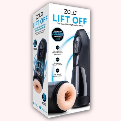 Get ready for out of this world pleasure with the ZOLO Lift Off One-Touch Vibrating Thrusting Stroker. Featuring vibrating thrusts at the push of a button, this stroker delivers hands-free stimulation at different speeds and patterns for a deeply satisfying massage. The ZOLO Lift Off has an easy to grip tapered base for comfortable handling, is USB-C rechargeable and waterproof. Features 9 adjustable thrusting modes and 7 vibration patterns that provide an extraordinary experience.